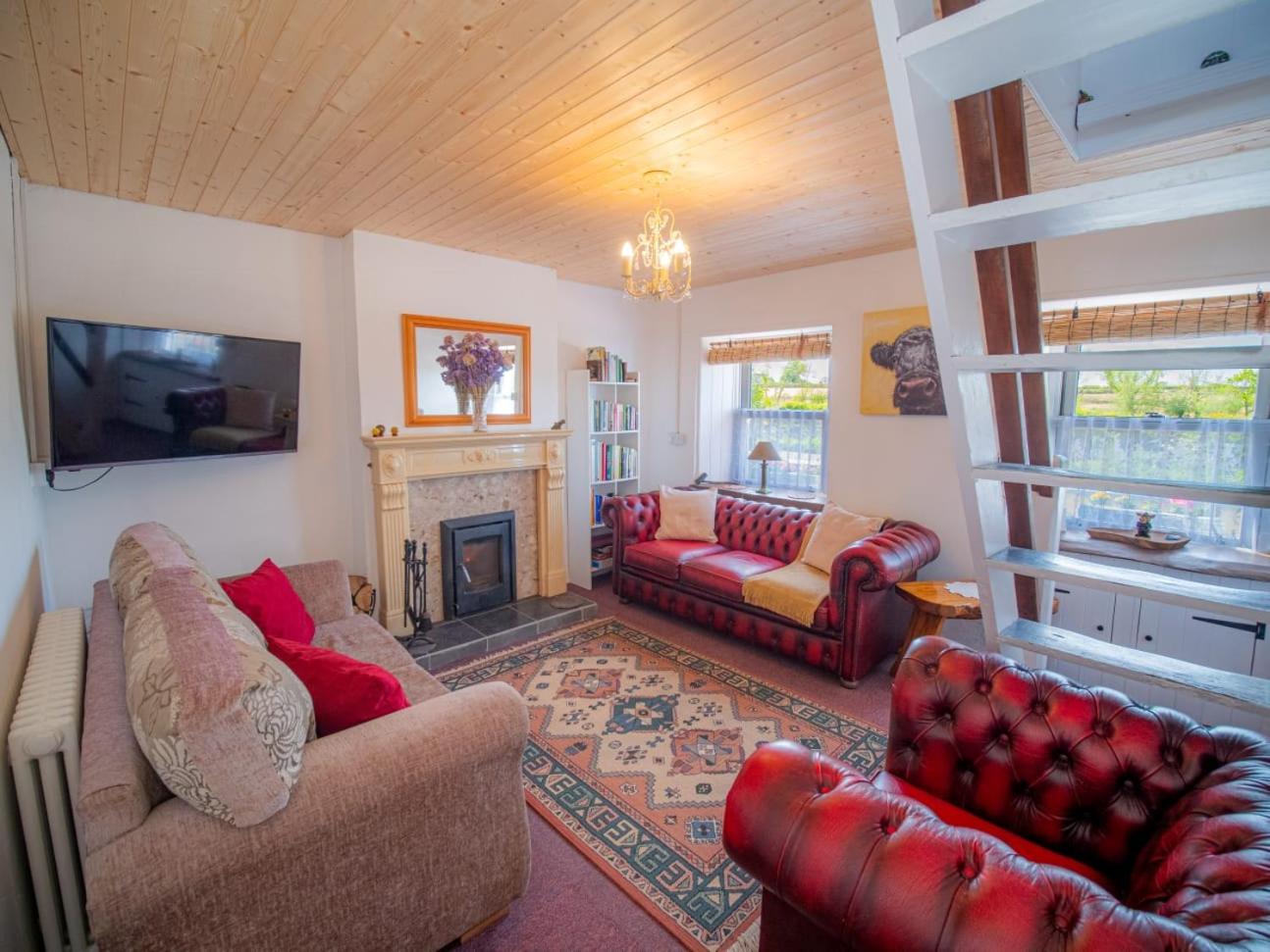 The holiday home has 2 bedrooms, a flat-screen TV, a fully equipped kitchen with an oven and a microwave, a washing machine, and 1 bathroom with a bath. Towels and bed linen are offered in the holiday home. There is also a seating area and a fireplace.