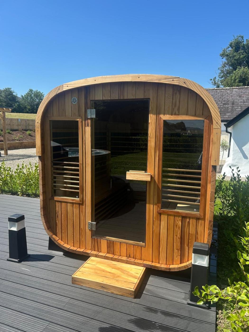 Three-Bedroom House. This holiday homes standout features are the hot tub, spa bath and sauna. Boasting a private entrance, this holiday home also includes 1 living room, 3 separate bedrooms and 2 bathrooms with a bath or a shower. Guests can make meals in the kitchen that is fitted with a stovetop, a refrigerator, an oven and a microwave. The holiday home offers a washing machine, an electric kettle, a barbecue, a flat-screen TV, as well as sea views. The unit has 4 beds.
