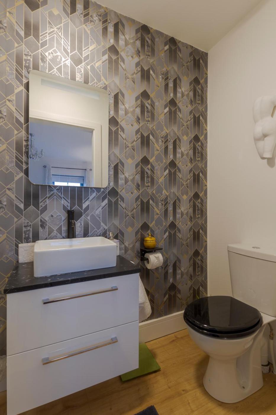 Three-Bedroom House. This holiday home features 1 living room, 3 separate bedrooms and 3 bathrooms with a shower and a hairdryer. The well-fitted kitchen features a refrigerator, a dishwasher, an oven and a microwave. This holiday home has a washing machine, flat-screen TV, garden views, as well as chocolate for guests. The unit has 5 beds.