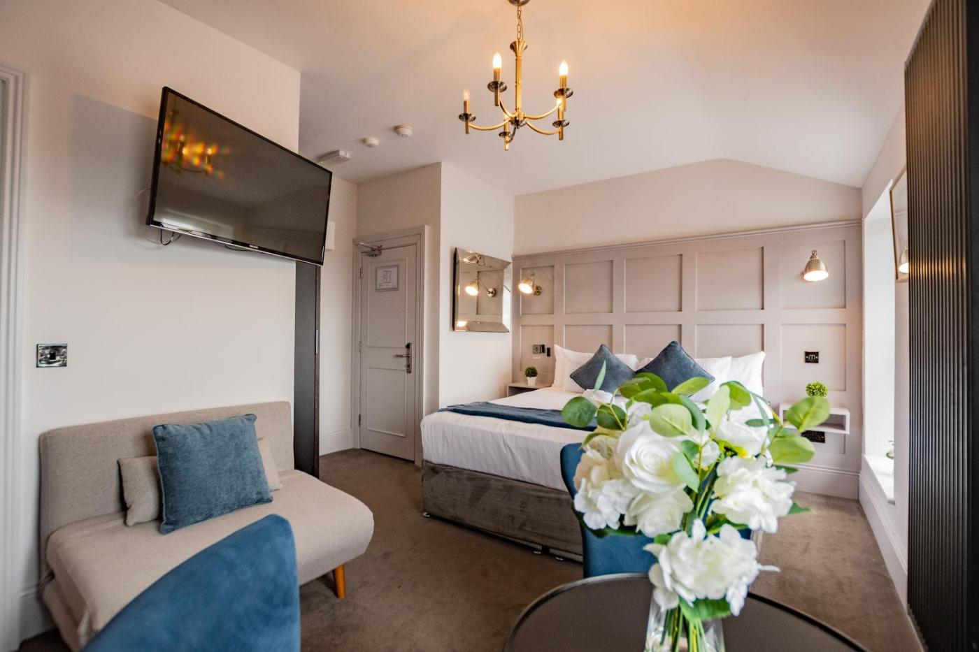 Deluxe Double Studio. Featuring free toiletries, this studio includes a private bathroom with a shower and a hairdryer. Guests can make meals in the kitchenette that has a stovetop, a refrigerator, kitchenware and an oven. The studio features a washing machine, a seating area, a dining area, a flat-screen TV, as well as sea views. The unit has 2 beds.