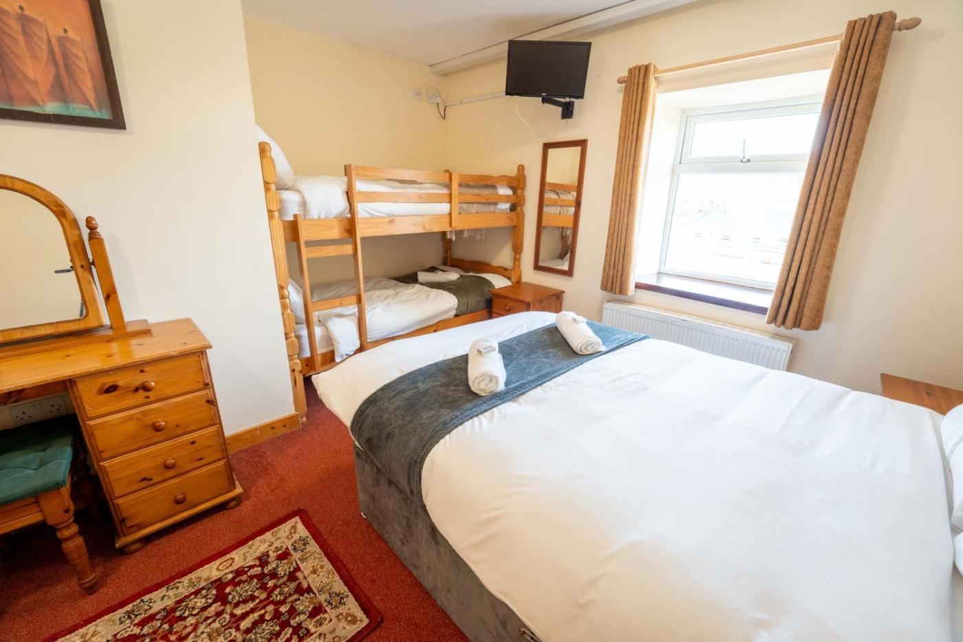 Guests can relax in each room with a TV and free tea and coffee. Bathrooms are either en suite or shared.