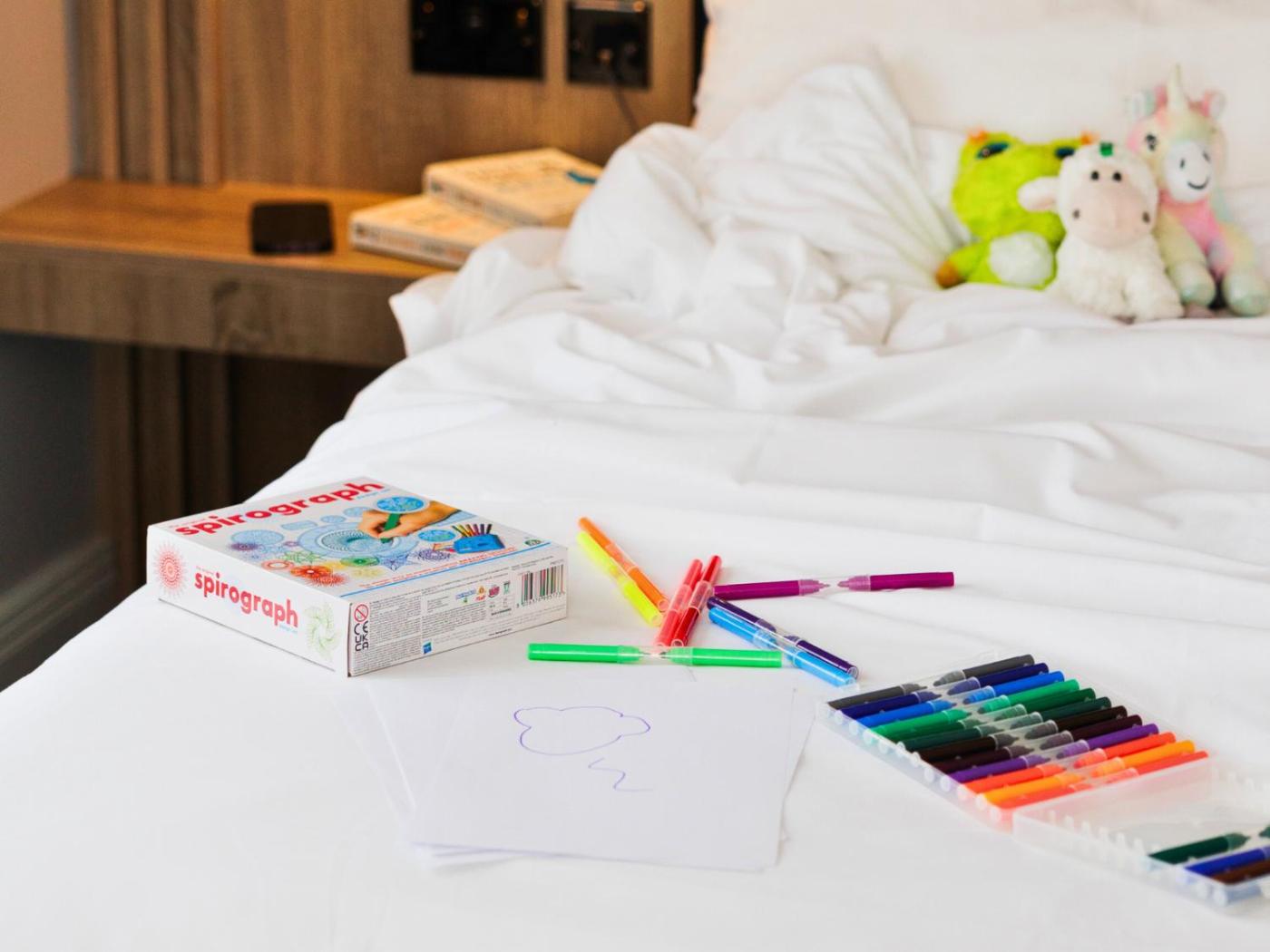 Shared stationery such as printed menus, magazines, pens, and paper removed